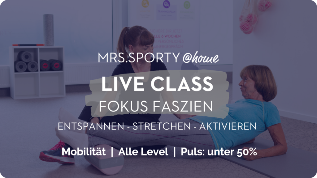 Trainiere für jedes deiner Ziele: Ob Abnehmen, Straffen, Muskelaufbau oder mehr Beweglichkeit durch gezieltes Faszien-Training. Mit Mrs.Sporty @ home hast du Zugang zu täglich wechselnden Live Classes und allen Workouts aus der Mediathek. Genieße das Gefühl, sicher Zuhause Sport zu treiben und trotzdem Live mit vielen Anderen in der Gruppe verbunden zu sein.
