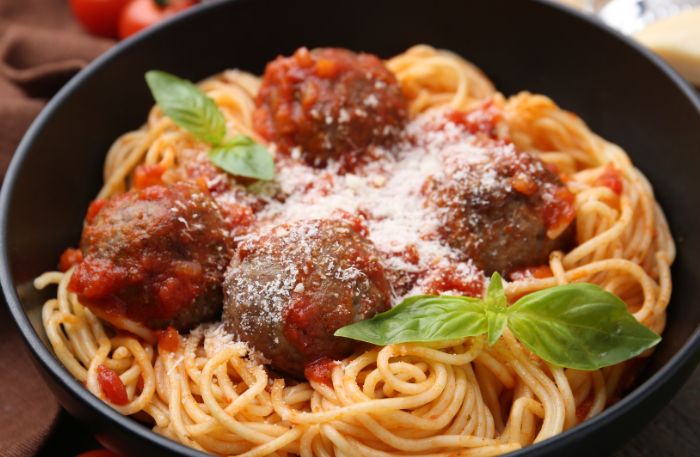 - Die Nudeln mit Sauce, Hackbällchen sowie etwas Parmesan servieren und genießen.